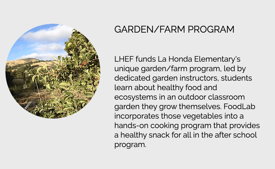 I am the President of the La Honda Educational Foundation (LHEF) and have been on the board since 2017. The La Honda Educational Foundation (LHEF) was founded in 1991 by a group of parents who wanted to provide more services to La Honda Elementary School than state funding would allow. The foundation is committed to ensuring all kids are provided a balanced, well-defined curriculum focused on fundamental skills and knowledge. We plan and manage several fundraising events throughout the year and all the money we raise goes to fund enrichment programs for La Honda Elementary students.